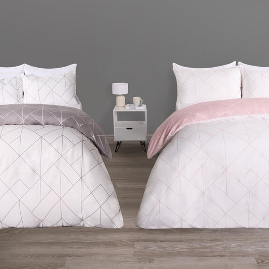 Geometric Print Reversible Duvet Sets 2 Pack - Blush/Grey