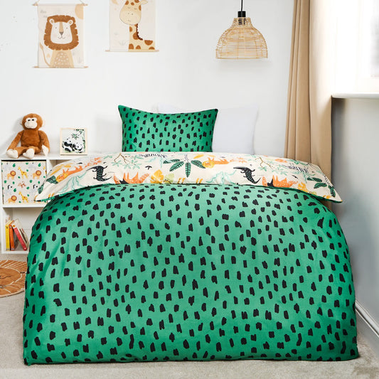 Kids Safari Print Reversible Duvet Cover Set - Natural/Green