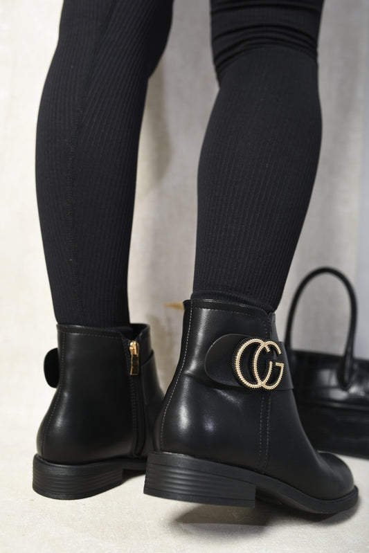 Chelsea Buckle Chunky Low Heel Ankle Boots