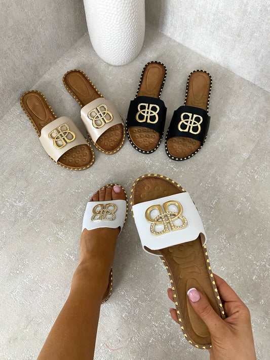 Rhinestone Double Buckle Adjustable Slip On Slides Sandals