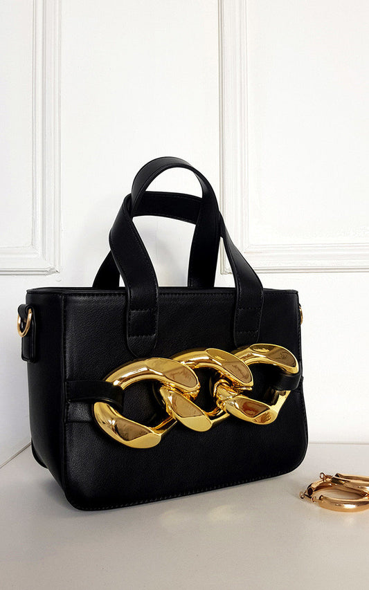 Faux Leather Bag with Extreme Chain Detail