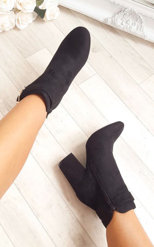 Buckle Faux Suede Ankle Boots