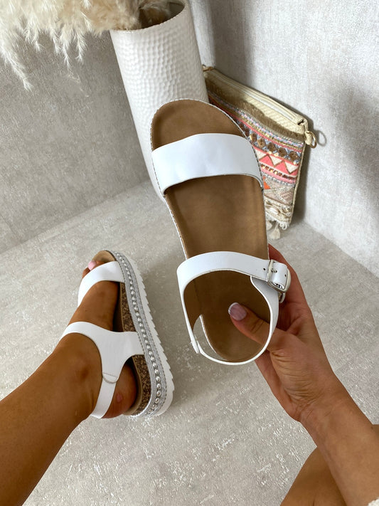 Espadrille Stud Trim Buckle Platform Sandals
