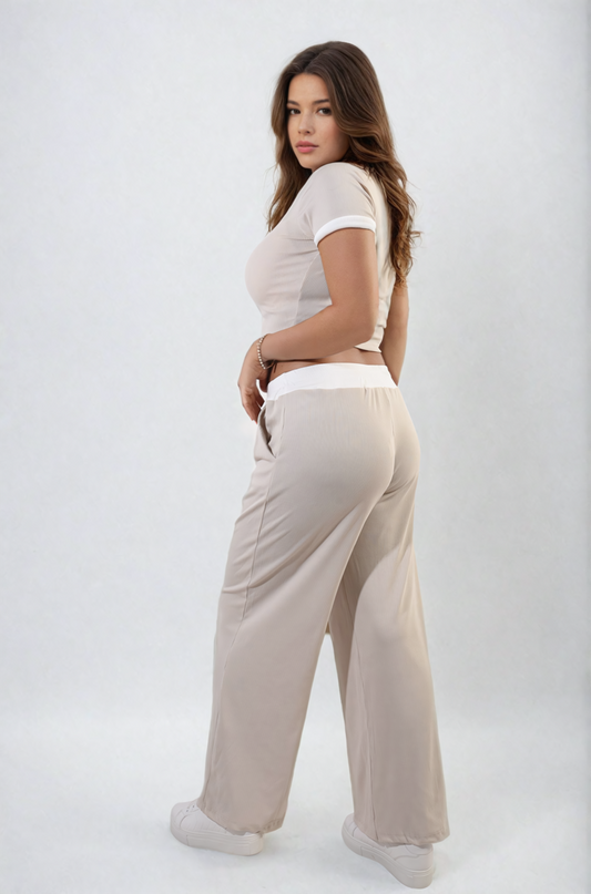 Contrasting Trim Crop Top and Trousers Co-ord Set
