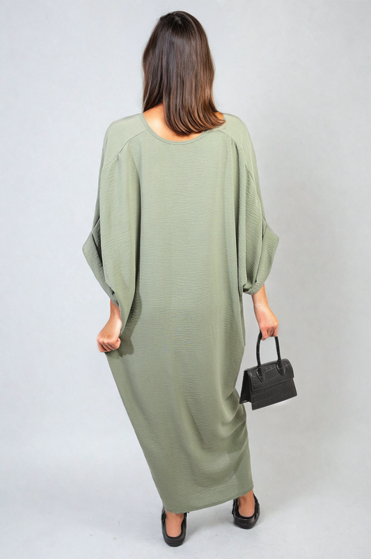 Twist Front Plunge Neckline Relaxed Fit Midi Dress