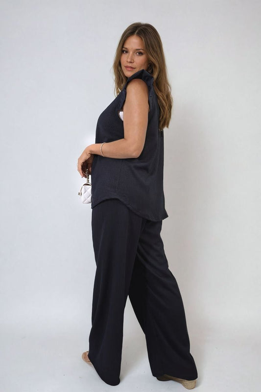 Ruffle Trim Top and Wide Leg Trouser Co-ord Set