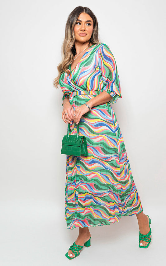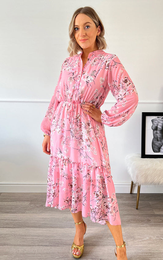 Long Sleeve Printed Maxi Dress with Belt Detail