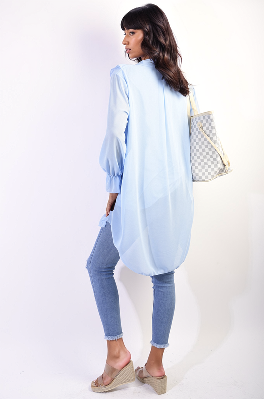 Two Tone Zip Front Oversized Long Sleeve Shirt