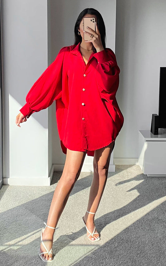 Button Down Oversized Ruffle Short Sleeve Mini Dress