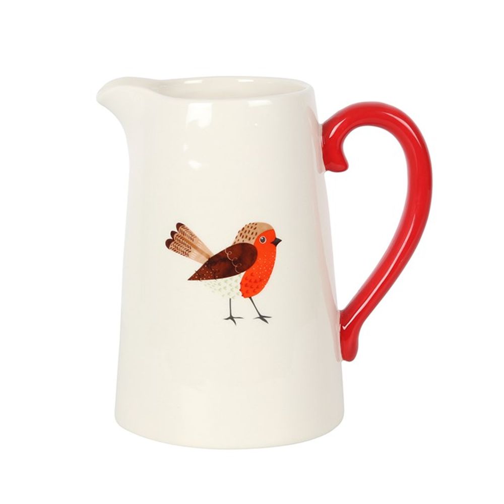 This ceramic flower jug features an adorable robin illustration and a contrasting red handle. Perfect for holding flowers as a vase or gifting for Mother's Day, teacher gifts, Christmas and more. Product Dimensions: H18cm x W17cm x D12cm Packaged Dimensions: H18.5cm x W17.5cm x D12.5cm