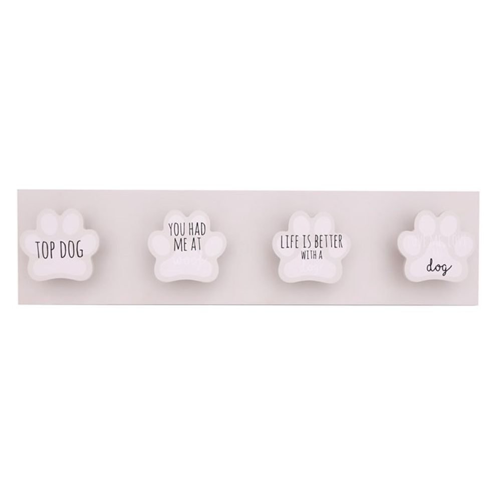 Perfect for any dog owner, this wall hook features 4 paw-shaped pegs for holding leads, harnesses, jackets, keys and more.
