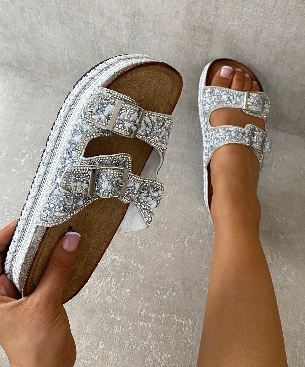 Step into a world of glamour and sophistication with the Remy Embellished Stone Double Buckle Platform Sandals β a dazzling choice that combines style with a touch of luxury, ensuring you stand out with elegance and flair in every step! β¨π‘